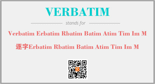 上述内容是“Verbatim Erbatim Rbatim Batim Atim Tim Im M”作为“VERBATIM”的缩写,解释为“逐字Erbatim Rbatim Batim Atim Tim Im M”时的信息,以及英文缩略词VERBATIM所代表的英文单词,其对应的中文拼音、详细解释以及在英文中的流行度和相关分类、应用领域及应用示例等。