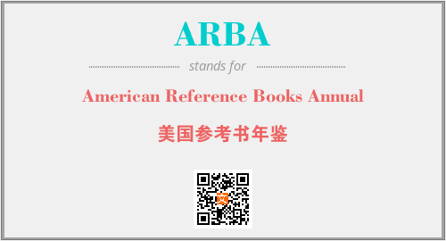 英文缩略词“ARBA”经常作为“American Reference Books Annual”的英文缩写来使用,中文表示:“美国参考书年鉴”。本文将详细介绍英文缩写词ARBA所代表英文单词,其对应的中文拼音、详细解释以及在英语中的流行度。此外,还有关于缩略词ARBA的分类、应用领域及相关应用示例等。
