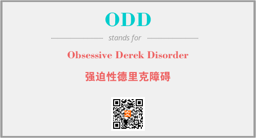 英文缩略词“ODD”经常作为“Obsessive Derek Disorder”的英文缩写来使用,中文表示:“强迫性德里克障碍”。本文将详细介绍英文缩写词ODD所代表英文单词,其对应的中文拼音、详细解释以及在英语中的流行度。此外,还有关于缩略词ODD的分类、应用领域及相关应用示例等。