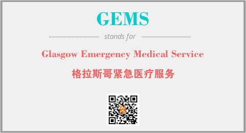 上述内容是“Glasgow Emergency Medical Service”作为“GEMS”的缩写,解释为“格拉斯哥紧急医疗服务”时的信息,以及英文缩略词GEMS所代表的英文单词,其对应的中文拼音、详细解释以及在英文中的流行度和相关分类、应用领域及应用示例等。