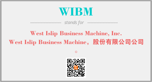 上述内容是“West Islip Business Machine, Inc.”作为“WIBM”的缩写,解释为“West Islip Business Machine,股份有限公司公司。”时的信息,以及英文缩略词WIBM所代表的英文单词,其对应的中文拼音、详细解释以及在英文中的流行度和相关分类、应用领域及应用示例等。