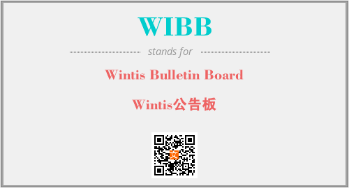 英文缩略词“WIBB”经常作为“Wintis Bulletin Board”的英文缩写来使用,中文表示:“Wintis公告板”。本文将详细介绍英文缩写词WIBB所代表英文单词,其对应的中文拼音、详细解释以及在英语中的流行度。此外,还有关于缩略词WIBB的分类、应用领域及相关应用示例等。