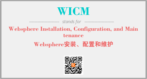 英文缩略词“WICM”经常作为“Websphere Installation, Configuration, and Maintenance”的英文缩写来使用,中文表示:“Websphere安装、配置和维护”。本文将详细介绍英文缩写词WICM所代表英文单词,其对应的中文拼音、详细解释以及在英语中的流行度。此外,还有关于缩略词WICM的分类、应用领域及相关应用示例等。