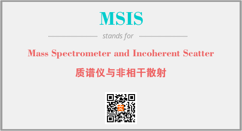 上述内容是“Mass Spectrometer and Incoherent Scatter”作为“MSIS”的缩写,解释为“质谱仪与非相干散射”时的信息,以及英文缩略词MSIS所代表的英文单词,其对应的中文拼音、详细解释以及在英文中的流行度和相关分类、应用领域及应用示例等。