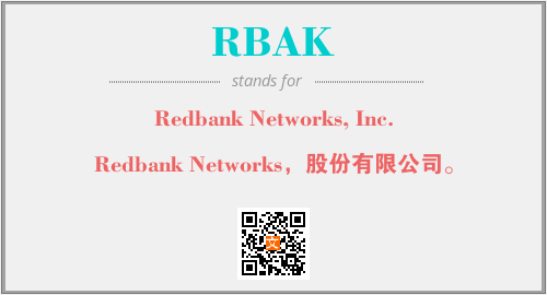 上述内容是“Redbank Networks, Inc.”作为“RBAK”的缩写,解释为“Redbank Networks,股份有限公司。”时的信息,以及英文缩略词RBAK所代表的英文单词,其对应的中文拼音、详细解释以及在英文中的流行度和相关分类、应用领域及应用示例等。