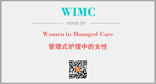 英文缩略词“WIMC”经常作为“Women in Managed Care”的英文缩写来使用,中文表示:“管理式护理中的女性”。本文将详细介绍英文缩写词WIMC所代表英文单词,其对应的中文拼音、详细解释以及在英语中的流行度。此外,还有关于缩略词WIMC的分类、应用领域及相关应用示例等。