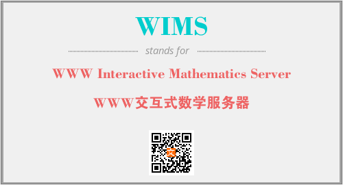 上述内容是“WWW Interactive Mathematics Server”作为“WIMS”的缩写,解释为“WWW交互式数学服务器”时的信息,以及英文缩略词WIMS所代表的英文单词,其对应的中文拼音、详细解释以及在英文中的流行度和相关分类、应用领域及应用示例等。