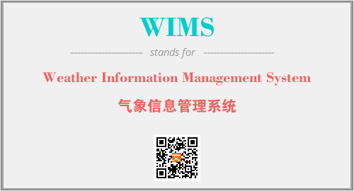 英文缩略词“WIMS”经常作为“Weather Information Management System”的英文缩写来使用,中文表示:“气象信息管理系统”。本文将详细介绍英文缩写词WIMS所代表英文单词,其对应的中文拼音、详细解释以及在英语中的流行度。此外,还有关于缩略词WIMS的分类、应用领域及相关应用示例等。