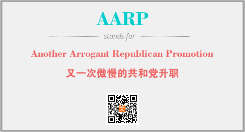 上述内容是“Another Arrogant Republican Promotion”作为“AARP”的缩写,解释为“又一次傲慢的共和党升职”时的信息,以及英文缩略词AARP所代表的英文单词,其对应的中文拼音、详细解释以及在英文中的流行度和相关分类、应用领域及应用示例等。