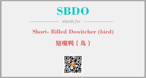 英文缩略词“SBDO”经常作为“Short- Billed Dowitcher (bird)”的英文缩写来使用,中文表示:“短嘴鸭(鸟)”。本文将详细介绍英文缩写词SBDO所代表英文单词,其对应的中文拼音、详细解释以及在英语中的流行度。此外,还有关于缩略词SBDO的分类、应用领域及相关应用示例等。