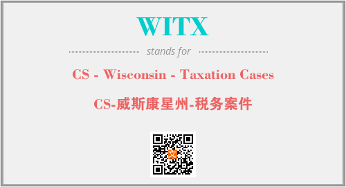 上述内容是“CS - Wisconsin - Taxation Cases”作为“WITX”的缩写,解释为“CS-威斯康星州-税务案件”时的信息,以及英文缩略词WITX所代表的英文单词,其对应的中文拼音、详细解释以及在英文中的流行度和相关分类、应用领域及应用示例等。