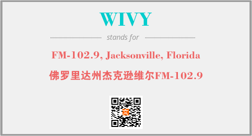 上述内容是“FM-102.9, Jacksonville, Florida”作为“WIVY”的缩写,解释为“佛罗里达州杰克逊维尔FM-102.9”时的信息,以及英文缩略词WIVY所代表的英文单词,其对应的中文拼音、详细解释以及在英文中的流行度和相关分类、应用领域及应用示例等。