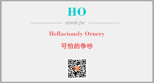 上述内容是“Hellaciously Ornery”作为“HO”的缩写,解释为“可怕的争吵”时的信息,以及英文缩略词HO所代表的英文单词,其对应的中文拼音、详细解释以及在英文中的流行度和相关分类、应用领域及应用示例等。