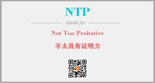 以上为Not Too Probative英文缩略词NTP的中文解释,以及该英文缩写在英语的流行度、分类和应用领域方面的信息。