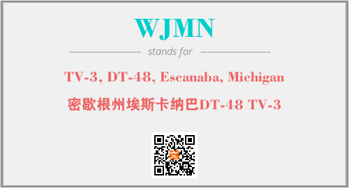 上述内容是“TV-3, DT-48, Escanaba, Michigan”作为“WJMN”的缩写,解释为“密歇根州埃斯卡纳巴DT-48 TV-3”时的信息,以及英文缩略词WJMN所代表的英文单词,其对应的中文拼音、详细解释以及在英文中的流行度和相关分类、应用领域及应用示例等。