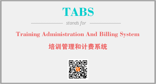 以上为Training Administration And Billing System英文缩略词TABS的中文解释,以及该英文缩写在英语的流行度、分类和应用领域方面的信息。