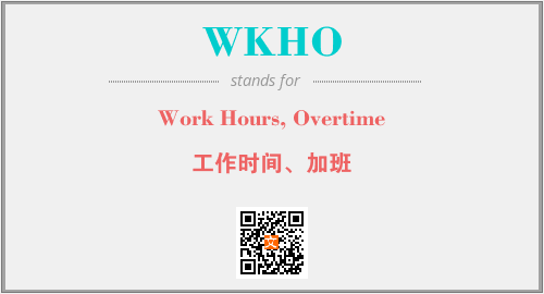 上述内容是“Work Hours, Overtime”作为“WKHO”的缩写,解释为“工作时间、加班”时的信息,以及英文缩略词WKHO所代表的英文单词,其对应的中文拼音、详细解释以及在英文中的流行度和相关分类、应用领域及应用示例等。
