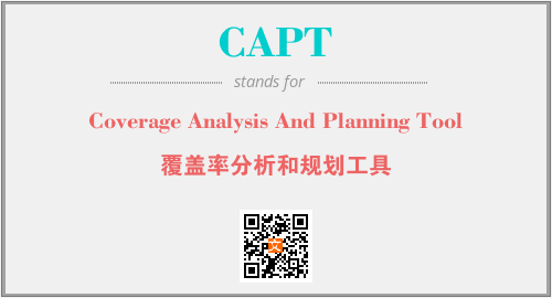 上述内容是“Coverage Analysis And Planning Tool”作为“CAPT”的缩写,解释为“覆盖率分析和规划工具”时的信息,以及英文缩略词CAPT所代表的英文单词,其对应的中文拼音、详细解释以及在英文中的流行度和相关分类、应用领域及应用示例等。