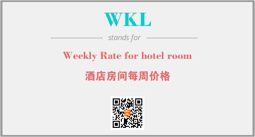 英文缩略词“WKL”经常作为“Weekly Rate for hotel room”的英文缩写来使用,中文表示:“酒店房间每周价格”。本文将详细介绍英文缩写词WKL所代表英文单词,其对应的中文拼音、详细解释以及在英语中的流行度。此外,还有关于缩略词WKL的分类、应用领域及相关应用示例等。