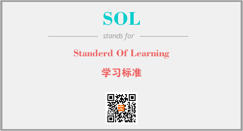 英文缩略词“SOL”经常作为“Standerd Of Learning”的英文缩写来使用,中文表示:“学习标准”。本文将详细介绍英文缩写词SOL所代表英文单词,其对应的中文拼音、详细解释以及在英语中的流行度。此外,还有关于缩略词SOL的分类、应用领域及相关应用示例等。