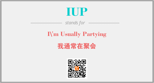 以上为I\'m Usually Partying英文缩略词IUP的中文解释,以及该英文缩写在英语的流行度、分类和应用领域方面的信息。
