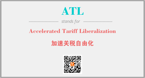 上述内容是“Accelerated Tariff Liberalization”作为“ATL”的缩写,解释为“加速关税自由化”时的信息,以及英文缩略词ATL所代表的英文单词,其对应的中文拼音、详细解释以及在英文中的流行度和相关分类、应用领域及应用示例等。