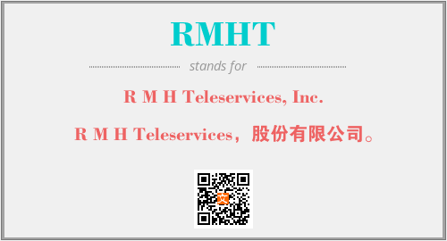 上述内容是“R M H Teleservices, Inc.”作为“RMHT”的缩写,解释为“R M H Teleservices,股份有限公司。”时的信息,以及英文缩略词RMHT所代表的英文单词,其对应的中文拼音、详细解释以及在英文中的流行度和相关分类、应用领域及应用示例等。