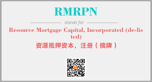上述内容是“Resource Mortgage Capital, Incorporated (de-listed)”作为“RMRPN”的缩写,解释为“资源抵押资本,注册(摘牌)”时的信息,以及英文缩略词RMRPN所代表的英文单词,其对应的中文拼音、详细解释以及在英文中的流行度和相关分类、应用领域及应用示例等。