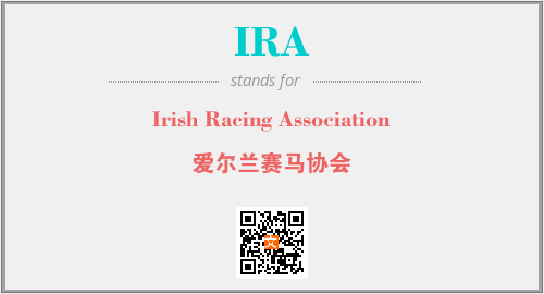 英文缩略词“IRA”经常作为“Irish Racing Association”的英文缩写来使用,中文表示:“爱尔兰赛马协会”。本文将详细介绍英文缩写词IRA所代表英文单词,其对应的中文拼音、详细解释以及在英语中的流行度。此外,还有关于缩略词IRA的分类、应用领域及相关应用示例等。