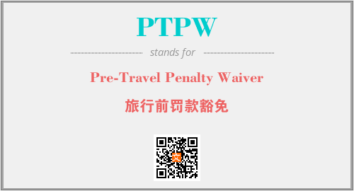 上述内容是“Pre-Travel Penalty Waiver”作为“PTPW”的缩写,解释为“旅行前罚款豁免”时的信息,以及英文缩略词PTPW所代表的英文单词,其对应的中文拼音、详细解释以及在英文中的流行度和相关分类、应用领域及应用示例等。