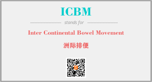 英文缩略词“ICBM”经常作为“Inter Continental Bowel Movement”的英文缩写来使用,中文表示:“洲际排便”。本文将详细介绍英文缩写词ICBM所代表英文单词,其对应的中文拼音、详细解释以及在英语中的流行度。此外,还有关于缩略词ICBM的分类、应用领域及相关应用示例等。