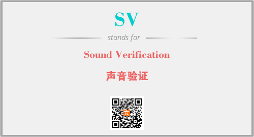 英文缩略词“SV”经常作为“Sound Verification”的英文缩写来使用,中文表示:“声音验证”。本文将详细介绍英文缩写词SV所代表英文单词,其对应的中文拼音、详细解释以及在英语中的流行度。此外,还有关于缩略词SV的分类、应用领域及相关应用示例等。