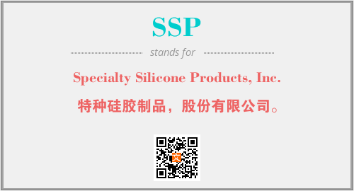 上述内容是“Specialty Silicone Products, Inc.”作为“SSP”的缩写,解释为“特种硅胶制品,股份有限公司。”时的信息,以及英文缩略词SSP所代表的英文单词,其对应的中文拼音、详细解释以及在英文中的流行度和相关分类、应用领域及应用示例等。