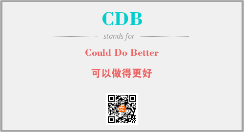 英文缩略词“CDB”经常作为“Could Do Better”的英文缩写来使用,中文表示:“可以做得更好”。本文将详细介绍英文缩写词CDB所代表英文单词,其对应的中文拼音、详细解释以及在英语中的流行度。此外,还有关于缩略词CDB的分类、应用领域及相关应用示例等。