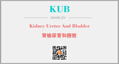上述内容是“Kidney Ureter And Bladder”作为“KUB”的缩写,解释为“肾输尿管和膀胱”时的信息,以及英文缩略词KUB所代表的英文单词,其对应的中文拼音、详细解释以及在英文中的流行度和相关分类、应用领域及应用示例等。
