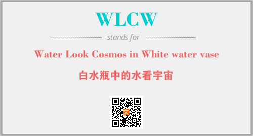 上述内容是“Water Look Cosmos in White water vase”作为“WLCW”的缩写,解释为“白水瓶中的水看宇宙”时的信息,以及英文缩略词WLCW所代表的英文单词,其对应的中文拼音、详细解释以及在英文中的流行度和相关分类、应用领域及应用示例等。