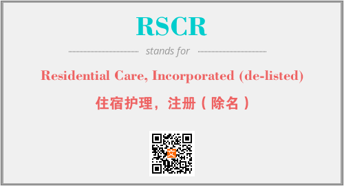 上述内容是“Residential Care, Incorporated (de-listed)”作为“RSCR”的缩写,解释为“住宿护理,注册(除名)”时的信息,以及英文缩略词RSCR所代表的英文单词,其对应的中文拼音、详细解释以及在英文中的流行度和相关分类、应用领域及应用示例等。