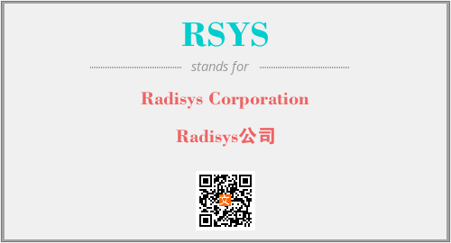 英文缩略词“RSYS”经常作为“Radisys Corporation”的英文缩写来使用,中文表示:“Radisys公司”。本文将详细介绍英文缩写词RSYS所代表英文单词,其对应的中文拼音、详细解释以及在英语中的流行度。此外,还有关于缩略词RSYS的分类、应用领域及相关应用示例等。