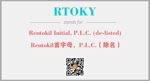 以上为Rentokil Initial, P.L.C. (de-listed)英文缩略词RTOKY的中文解释,以及该英文缩写在英语的流行度、分类和应用领域方面的信息。