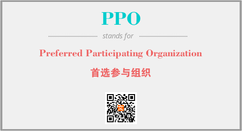 英文缩略词“PPO”经常作为“Preferred Participating Organization”的英文缩写来使用,中文表示:“首选参与组织”。本文将详细介绍英文缩写词PPO所代表英文单词,其对应的中文拼音、详细解释以及在英语中的流行度。此外,还有关于缩略词PPO的分类、应用领域及相关应用示例等。