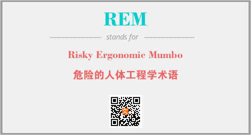 上述内容是“Risky Ergonomic Mumbo”作为“REM”的缩写,解释为“危险的人体工程学术语”时的信息,以及英文缩略词REM所代表的英文单词,其对应的中文拼音、详细解释以及在英文中的流行度和相关分类、应用领域及应用示例等。