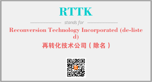 上述内容是“Reconversion Technology Incorporated (de-listed)”作为“RTTK”的缩写,解释为“再转化技术公司(除名)”时的信息,以及英文缩略词RTTK所代表的英文单词,其对应的中文拼音、详细解释以及在英文中的流行度和相关分类、应用领域及应用示例等。