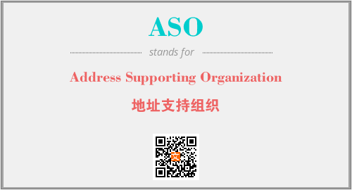 上述内容是“Address Supporting Organization”作为“ASO”的缩写,解释为“地址支持组织”时的信息,以及英文缩略词ASO所代表的英文单词,其对应的中文拼音、详细解释以及在英文中的流行度和相关分类、应用领域及应用示例等。