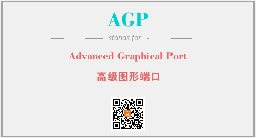 以上为Advanced Graphical Port英文缩略词AGP的中文解释,以及该英文缩写在英语的流行度、分类和应用领域方面的信息。