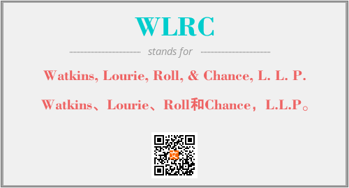 上述内容是“Watkins, Lourie, Roll, & Chance, L. L. P.”作为“WLRC”的缩写,解释为“Watkins、Lourie、Roll和Chance,L.L.P。”时的信息,以及英文缩略词WLRC所代表的英文单词,其对应的中文拼音、详细解释以及在英文中的流行度和相关分类、应用领域及应用示例等。