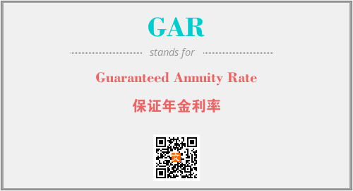上述内容是“Guaranteed Annuity Rate”作为“GAR”的缩写,解释为“保证年金利率”时的信息,以及英文缩略词GAR所代表的英文单词,其对应的中文拼音、详细解释以及在英文中的流行度和相关分类、应用领域及应用示例等。