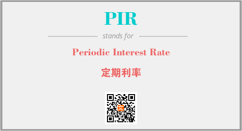 上述内容是“Periodic Interest Rate”作为“PIR”的缩写,解释为“定期利率”时的信息,以及英文缩略词PIR所代表的英文单词,其对应的中文拼音、详细解释以及在英文中的流行度和相关分类、应用领域及应用示例等。