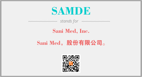 上述内容是“Sani Med, Inc.”作为“SAMDE”的缩写,解释为“Sani Med,股份有限公司。”时的信息,以及英文缩略词SAMDE所代表的英文单词,其对应的中文拼音、详细解释以及在英文中的流行度和相关分类、应用领域及应用示例等。