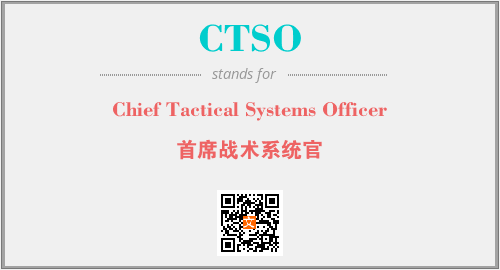 英文缩略词“CTSO”经常作为“Chief Tactical Systems Officer”的英文缩写来使用,中文表示:“首席战术系统官”。本文将详细介绍英文缩写词CTSO所代表英文单词,其对应的中文拼音、详细解释以及在英语中的流行度。此外,还有关于缩略词CTSO的分类、应用领域及相关应用示例等。