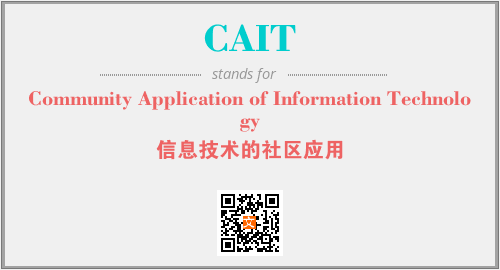 上述内容是“Community Application of Information Technology”作为“CAIT”的缩写,解释为“信息技术的社区应用”时的信息,以及英文缩略词CAIT所代表的英文单词,其对应的中文拼音、详细解释以及在英文中的流行度和相关分类、应用领域及应用示例等。